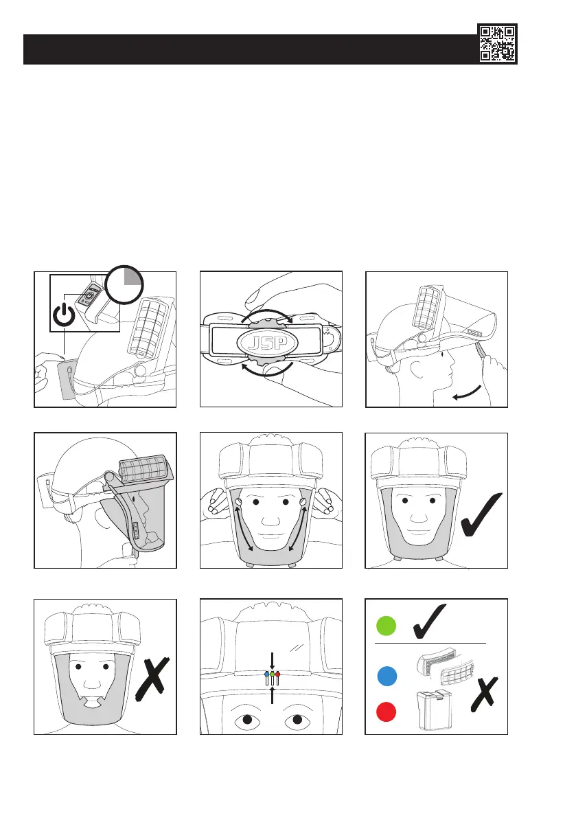 su colocación sea segura. Tal vez sea necesario ajustar, con el sistema de ajuste tridimensional de JSP, la posición de la banda de la cabeza