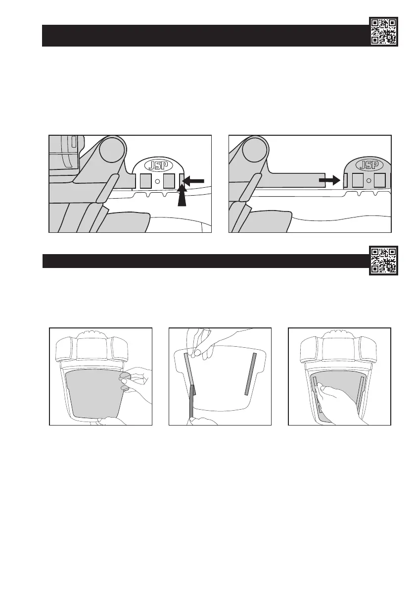 1. Para liberar el soporte de visor, presione a la vez la parte trasera de las dos patillas laterales del visor en dirección a la carcasa del casco y