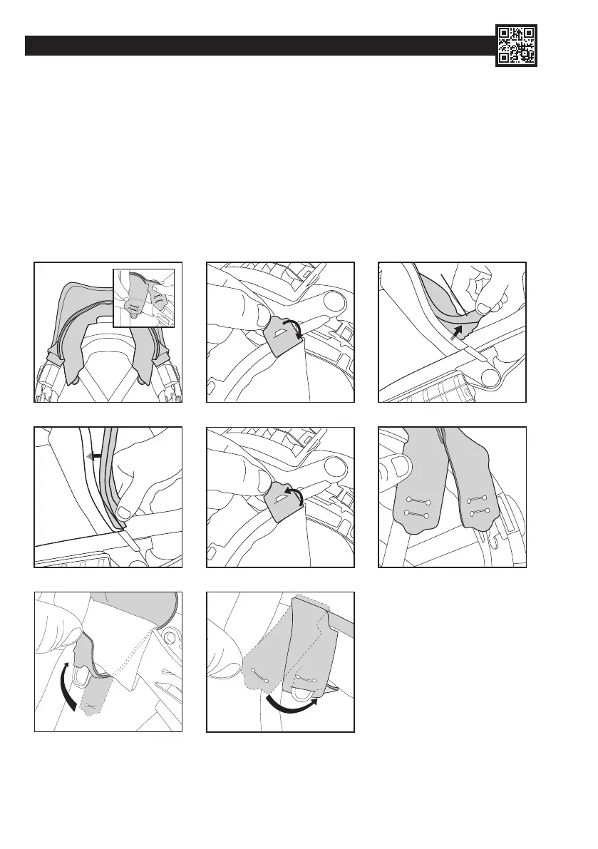 • Posizionare i passanti esterni dietro la bardatura interna dell'elmetto. Agganciare i passanti ai punti di ssaggio della bardatura interna