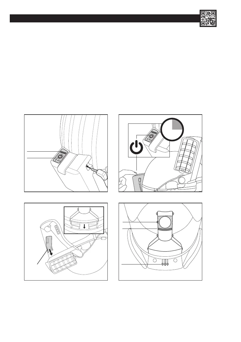 2. Açılıyor. Üniteyi dik pozisyonda tutun, pil paketindeki düğmeye basılı tutarak üniteyi açın. Yanındaki LED şarj seviyesi göstergeleri anlık