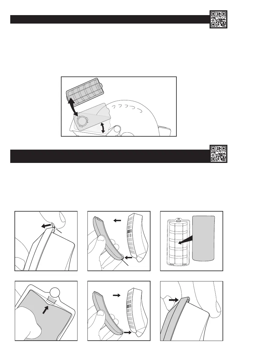 4. Wyczyścić obudowę ltra wstępnego za pomocą wilgotnej ściereczki lub miękkiej szczotki i włożyć świeży ltr wstępny pod trzy haczyki