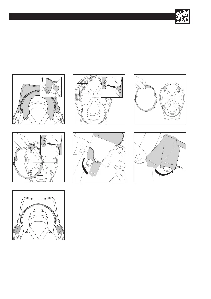 1. Odczepić cztery wewnętrzne i zewnętrzne pętelki kołnierza od więźby wewnątrz kasku.
