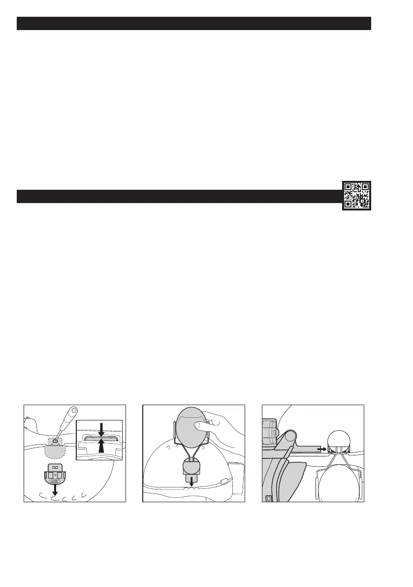 Sprawdzanie akumulatora i przepływu powietrza). Aby odczepić element mocujący wizjer, należy docisnąć tylną część bocznych ramion