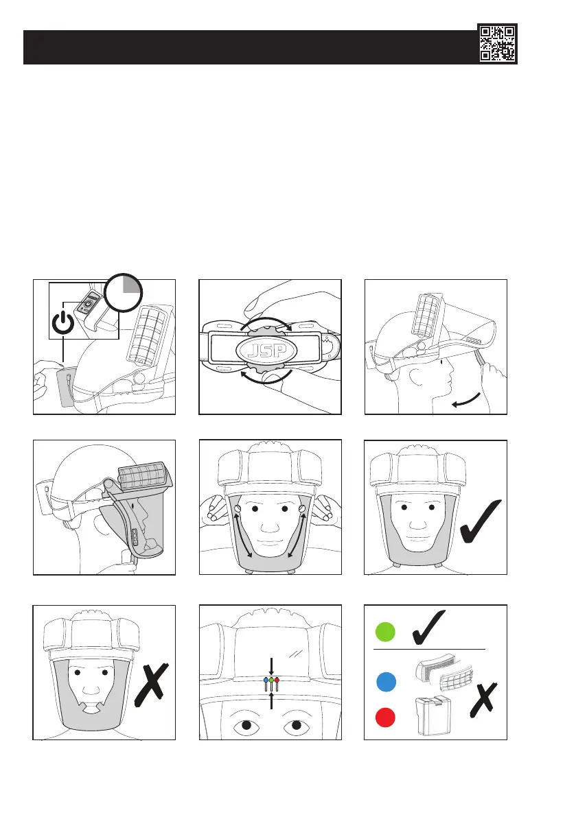 6. Vérier l'indicateur vert sur l'afchage tête haute (HUD). Le casque est correctement enlé lorsqu'aucune partie de la jupe d'étanchéité du