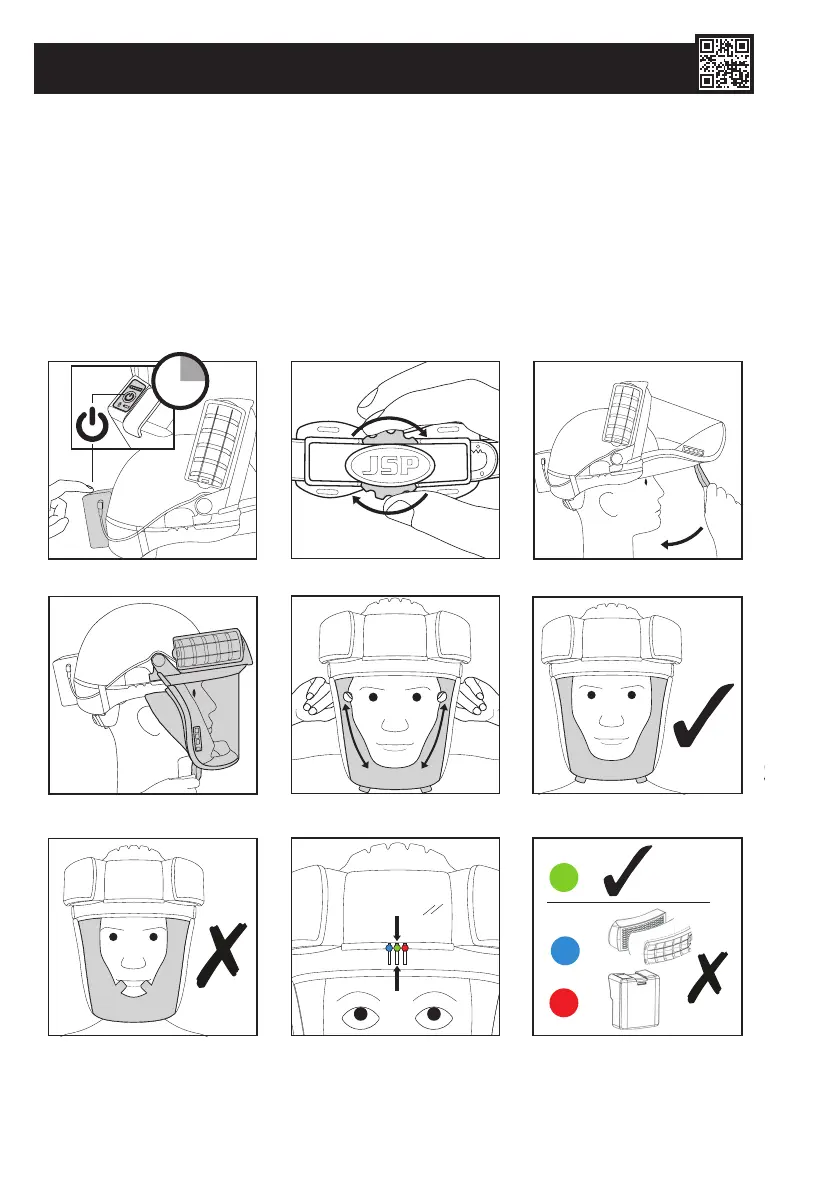 sodass er sicher und bequem sitzt. Eventuell müssen Sie die Position des Kopfbands im Helm mit dem JSP 3D-Verstellsystem einstellen,