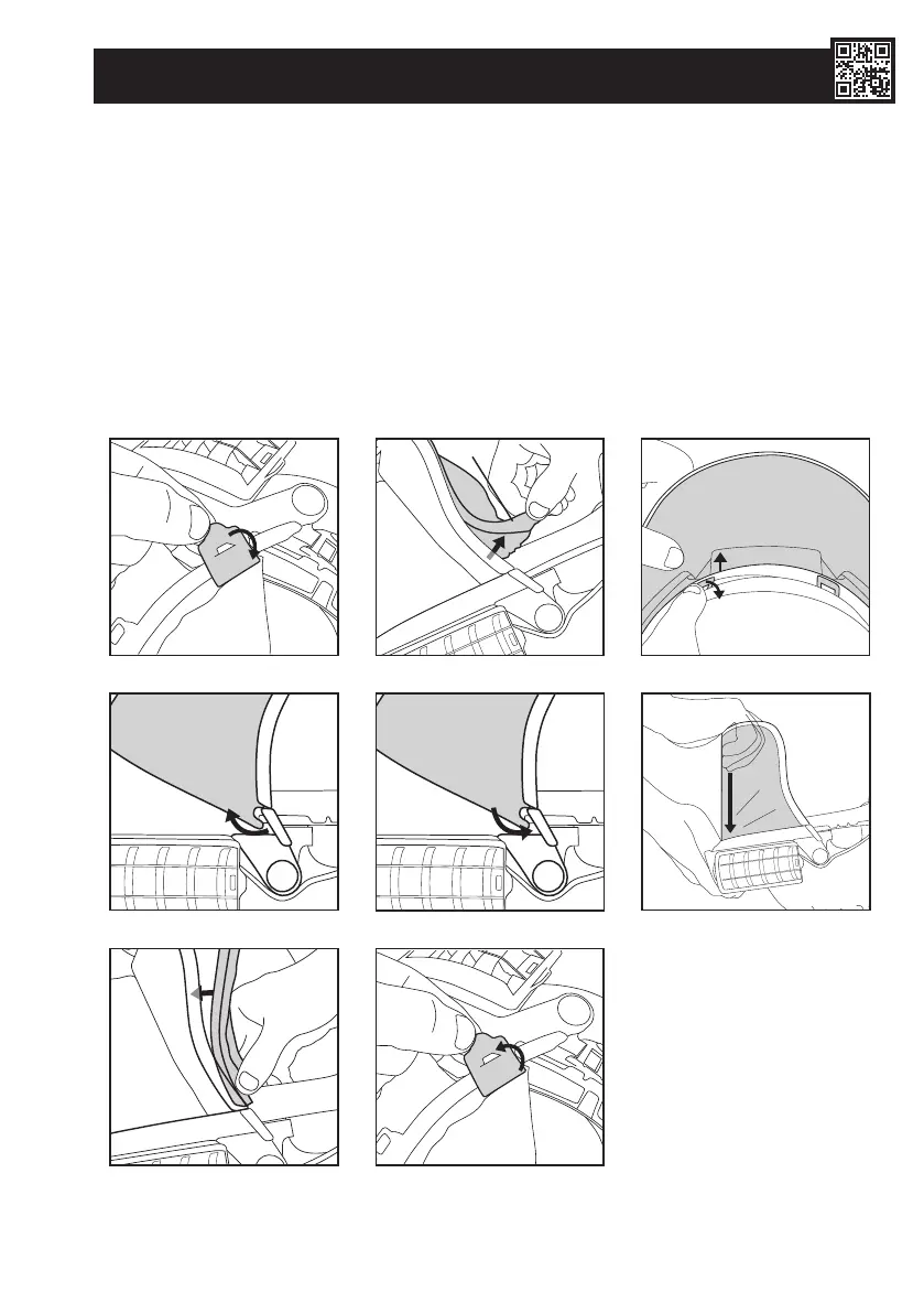 8. Bringen Sie die Laschen der Gesichtsabdichtung wieder am Visier an (links und rechts).