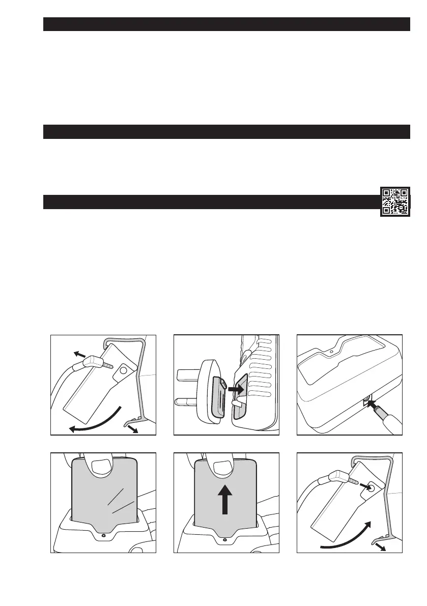 4. Het accupack opladen. Plaats het accupack in het oplaadstation totdat u een klik hoort (het groene ledlampje in het oplaadstation