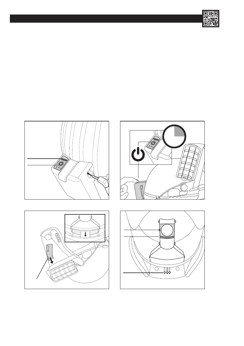 2. Aanzetten. Houd de unit rechtop, zet de unit aan door de schakelaar op het accupack in te drukken. De naastliggende laadniveaulampjes