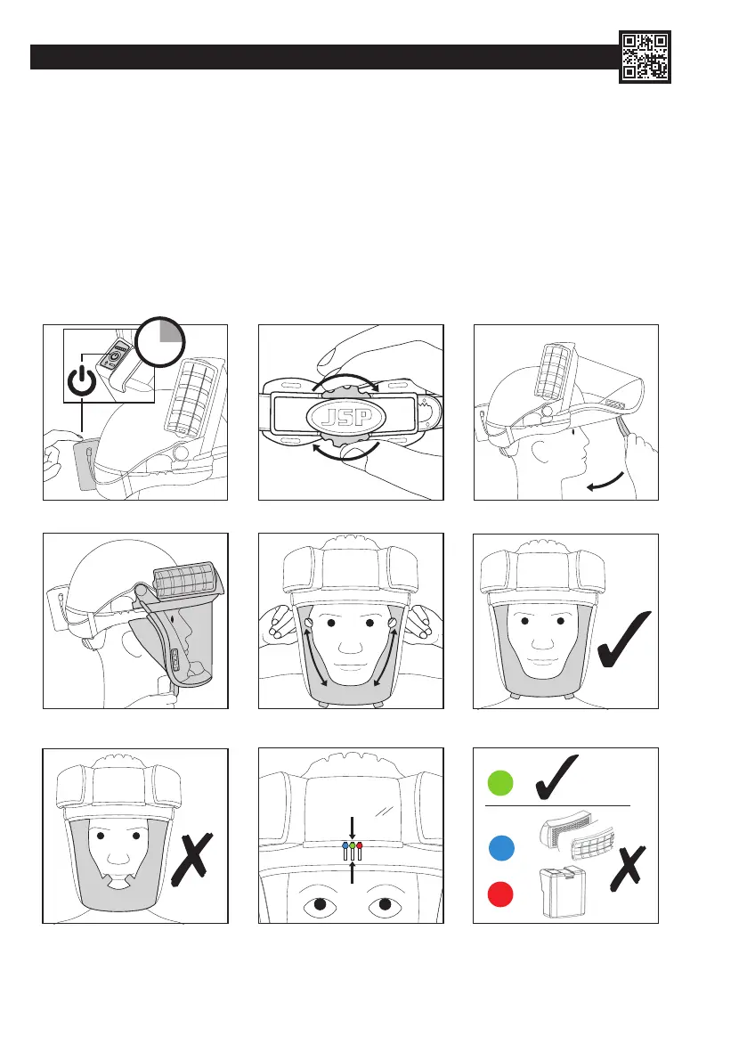 6. Controleer het groene controlelampje in de Head-Up Display (HUD). Als de gezichtsafdichtende rand juist is opgezet, dan bevindt zich