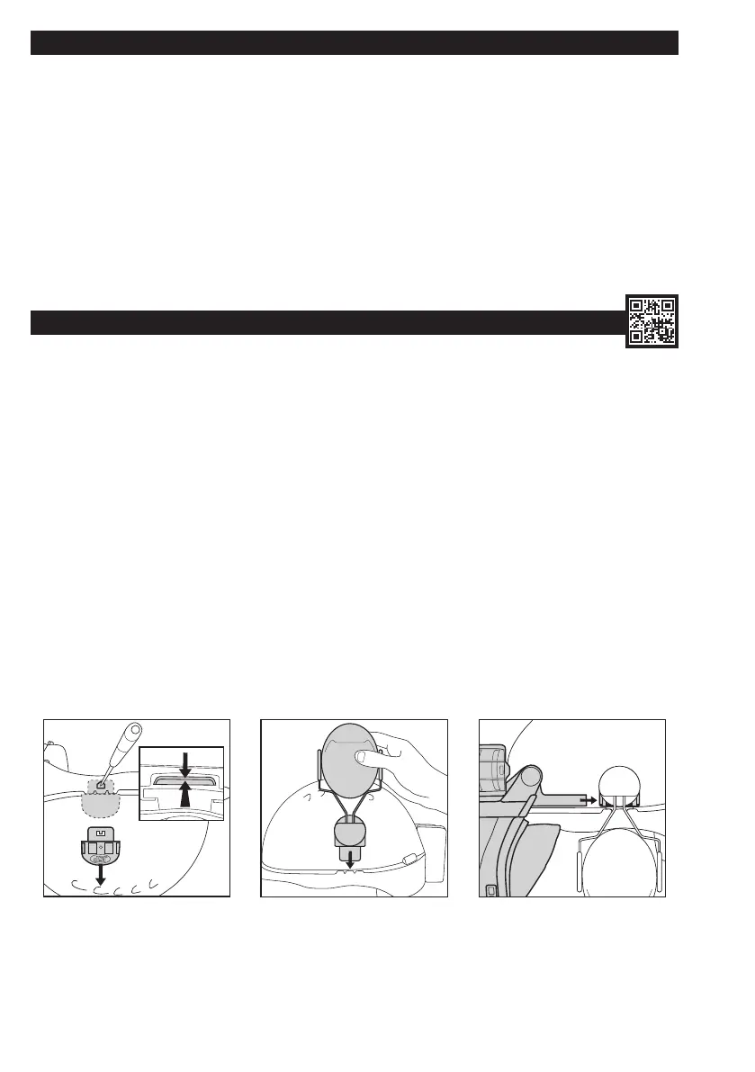 1. Verwijder de adapters van de vizierhouder van de helmschaal. Keer de helm om, druk de rand van de adapter naar de buitenkant van