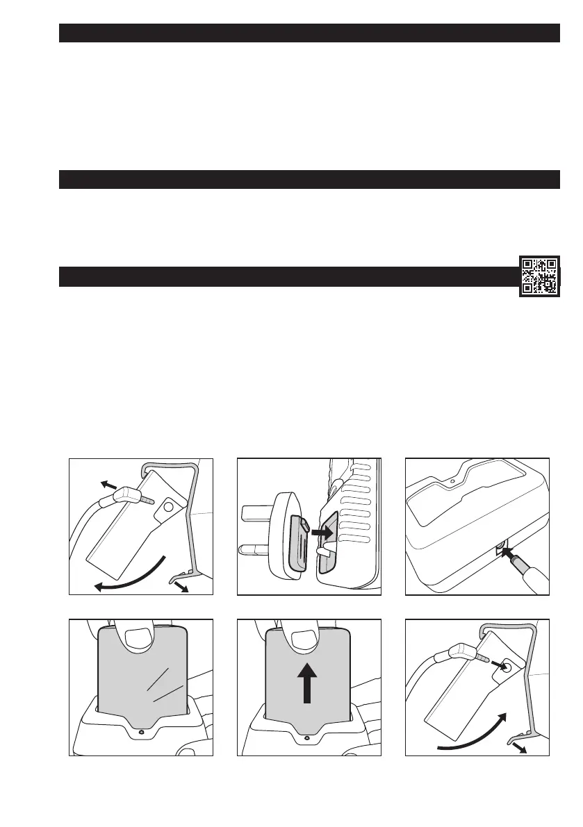 4. Oplad batterienheden. Anbring batterienheden i ladestationen. Der skal lyde et klik, og ladestationen LED-indikator skifter fra grønt