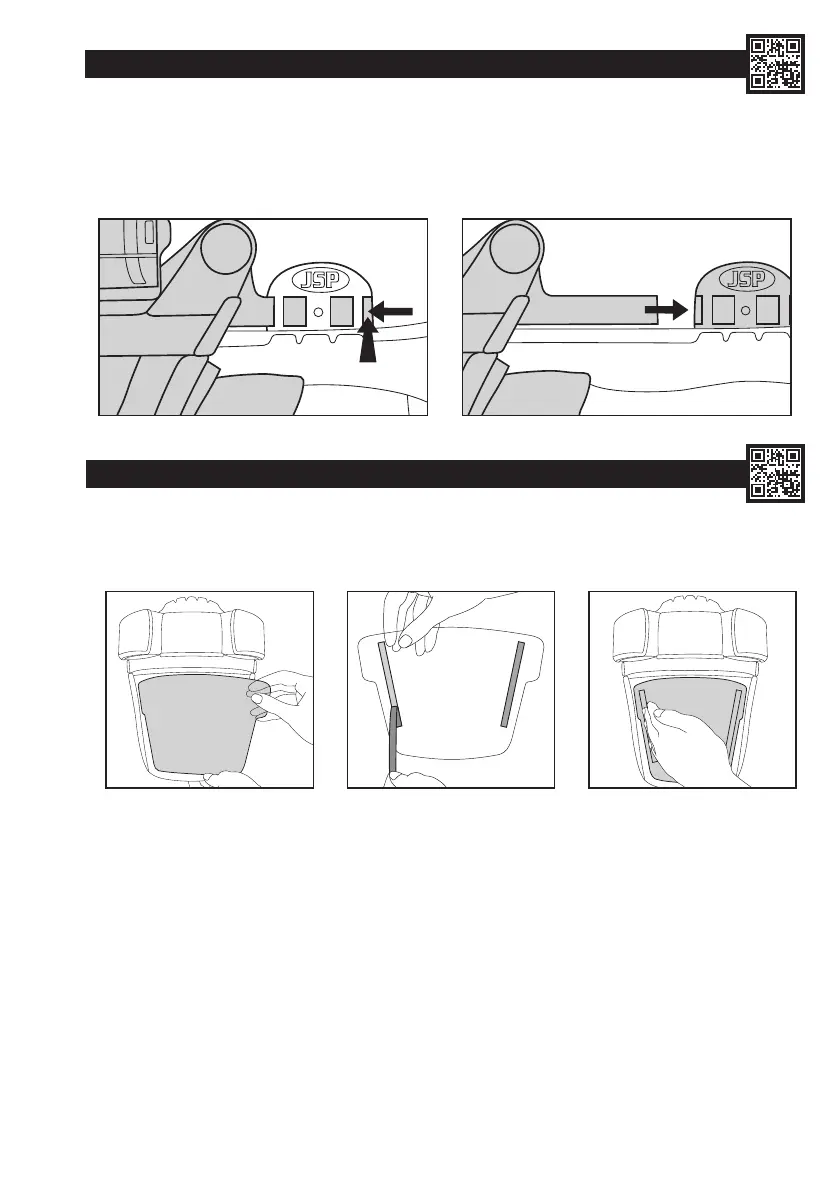 1. Frigør visirholderen ved at trykke visirsidearmene i begge sider af hjelmen ind mod hjelmen og skubbe dem fremad.
