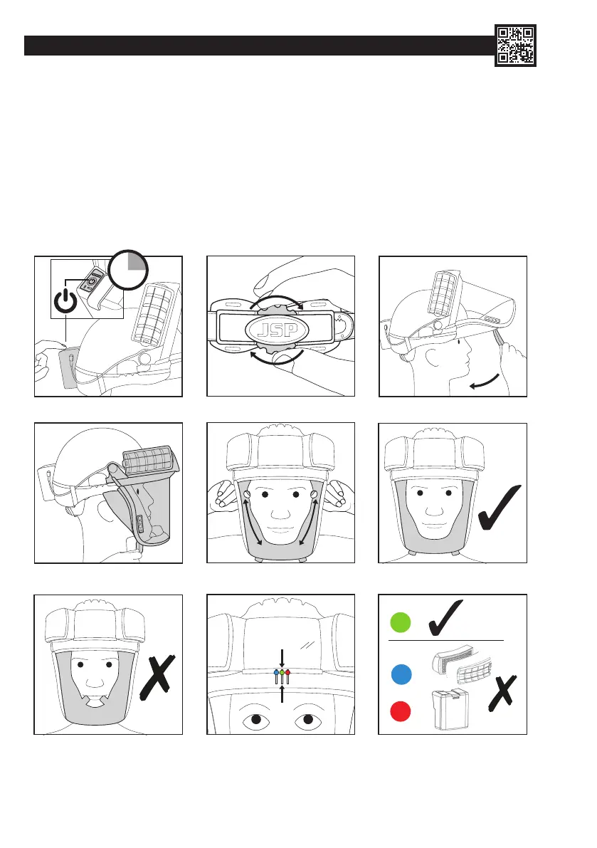 plasseringen til hodestroppen i hjelmen med JSPs 3D-justeringssystem, slik at den sitter komfortabelt og sikkert. En instruksjonsvideo