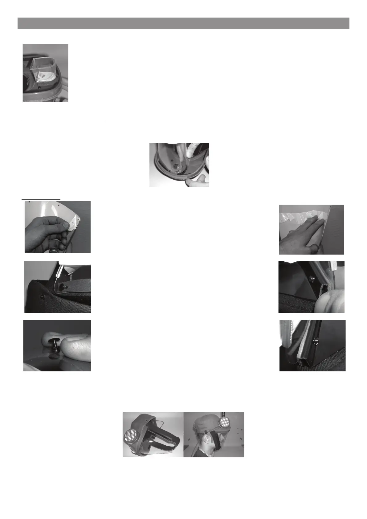 visière soit bien centrée. Comprimer les sections Velcro™ l’une sur l’autre en vérifiant que la visière est bien en