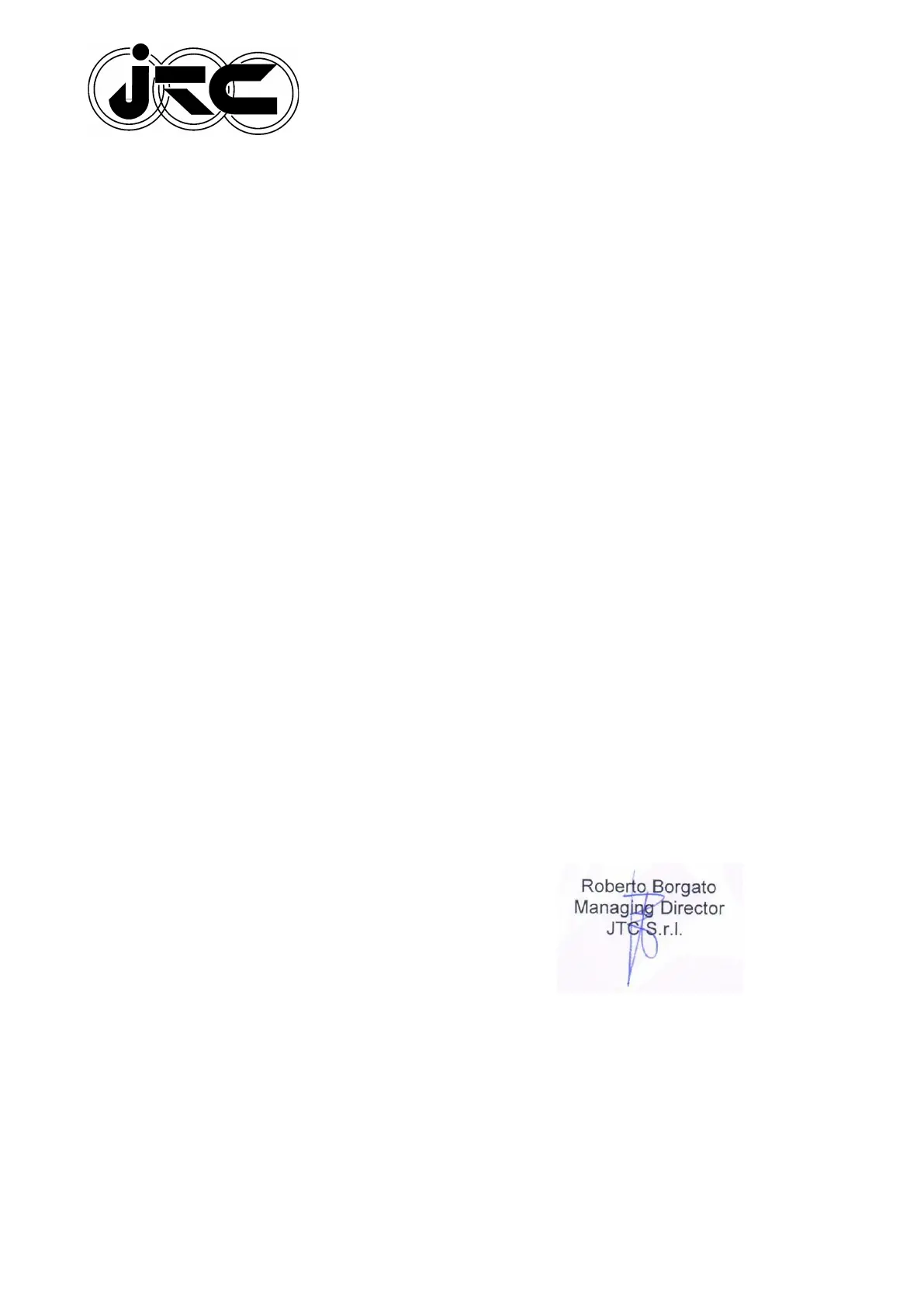We as legal representative of JTC S.r.l. ,