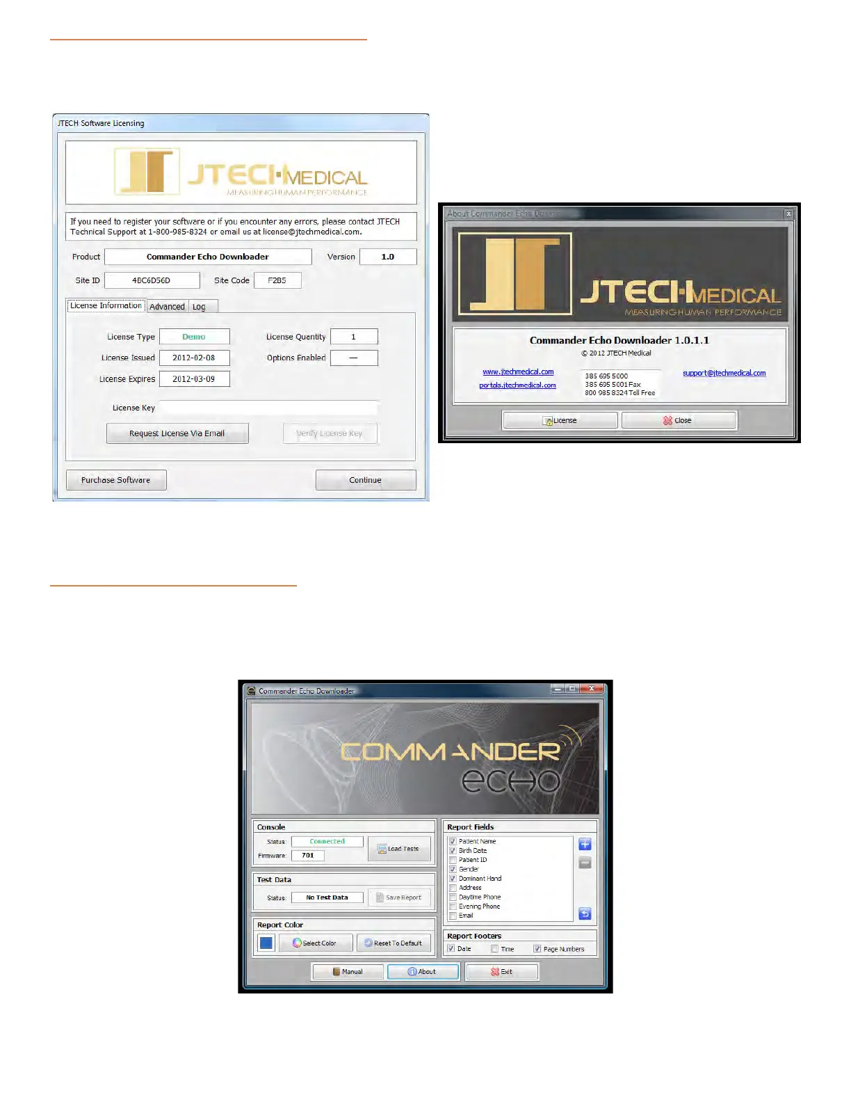 When you rst open the Commander Echo Downloader Soware, you will need to contact JTECH Medical