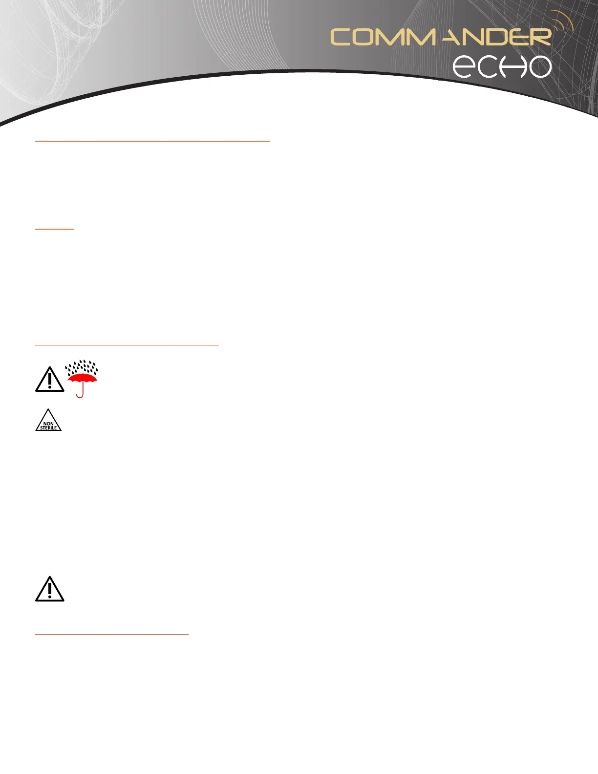 Warning: Keep dry, do not immerse any part of any Commander Echo Console, Echo instrument,