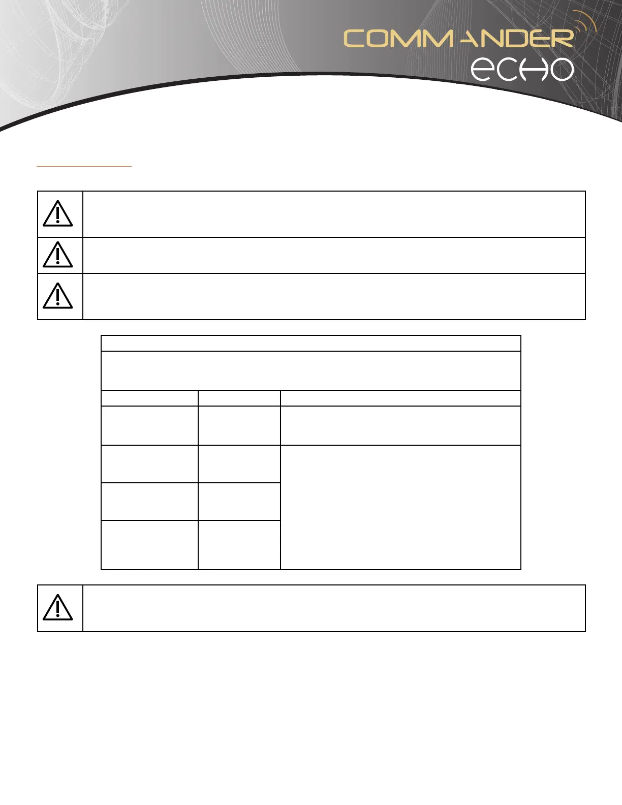 below. The customer or user of the Commander Echo System should assure that it is used in such