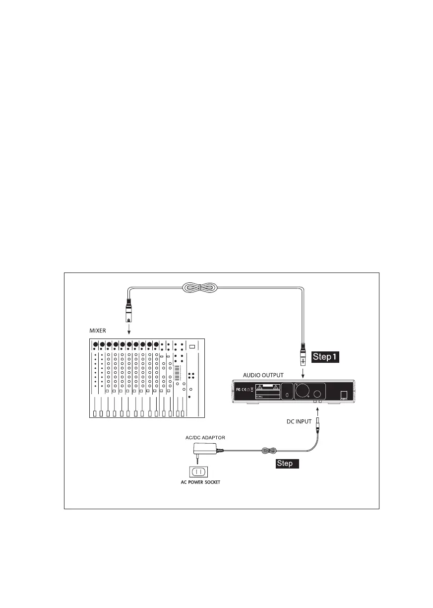 panel of receiver, and plug another end into an AC outlet (Step 2)