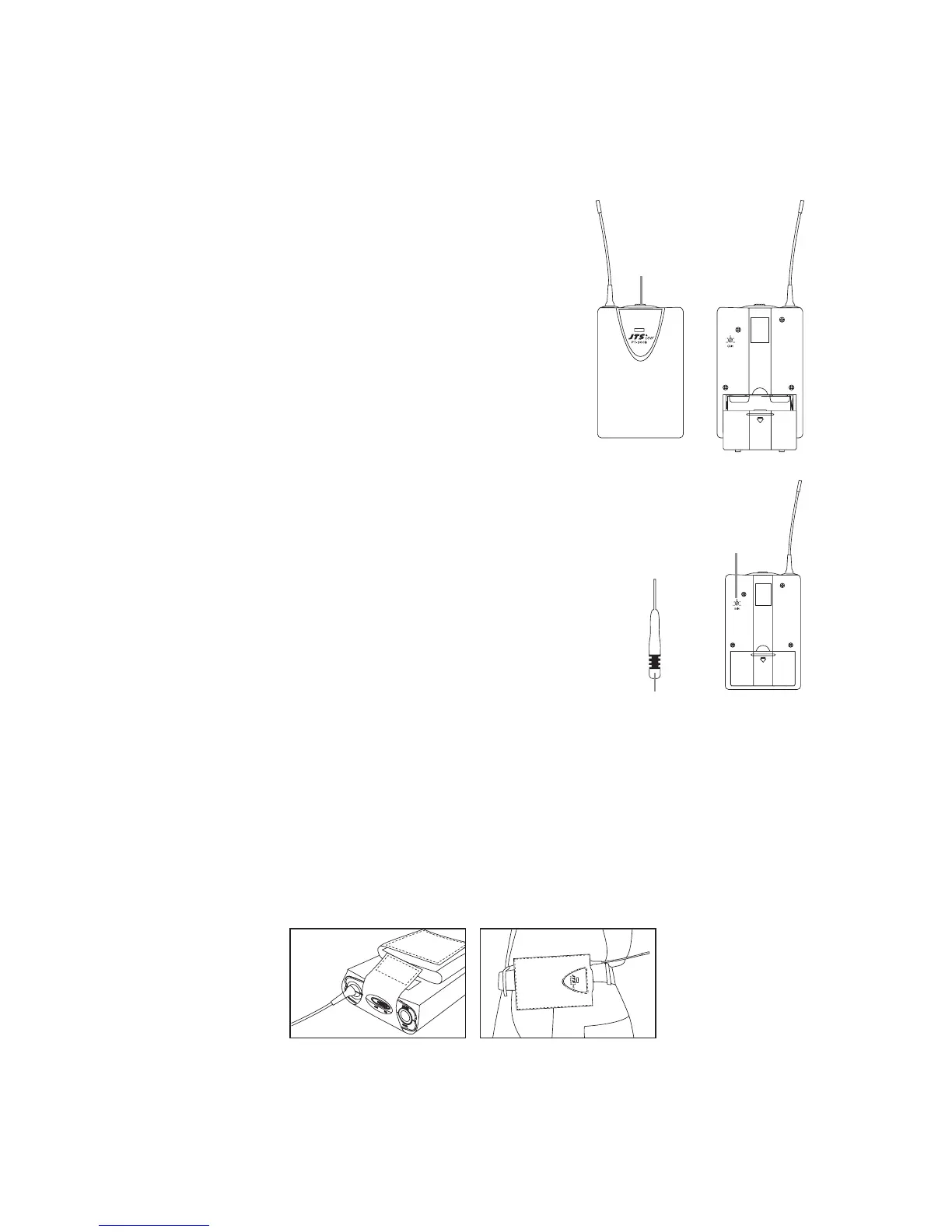 e carry case allows body-pack transmier to be aached on performer’s belt, place the