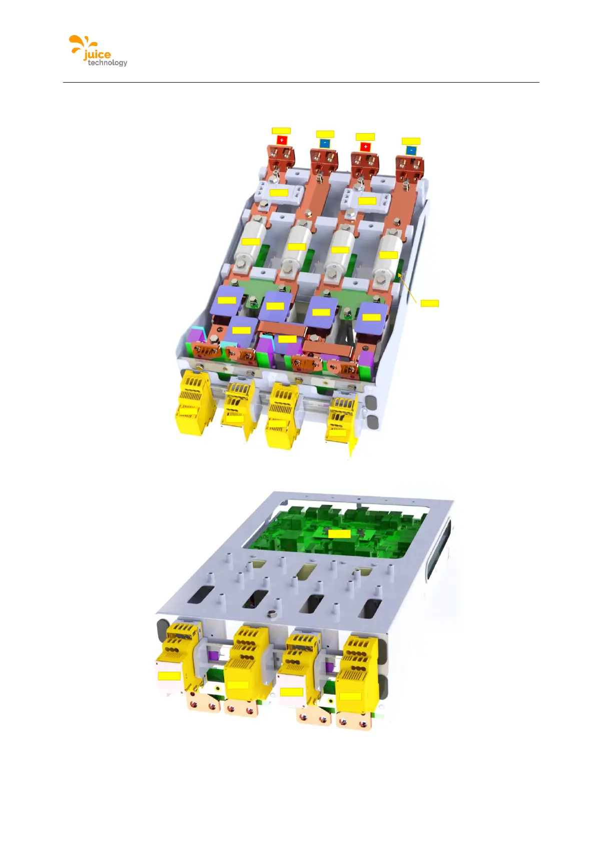 Juice ULTRA - Figure 12: DC Output Switchgear of the Double Slot Version (Bottom View); Figure 13: DC Output Switchgear of the Double Slot Version (Top View)