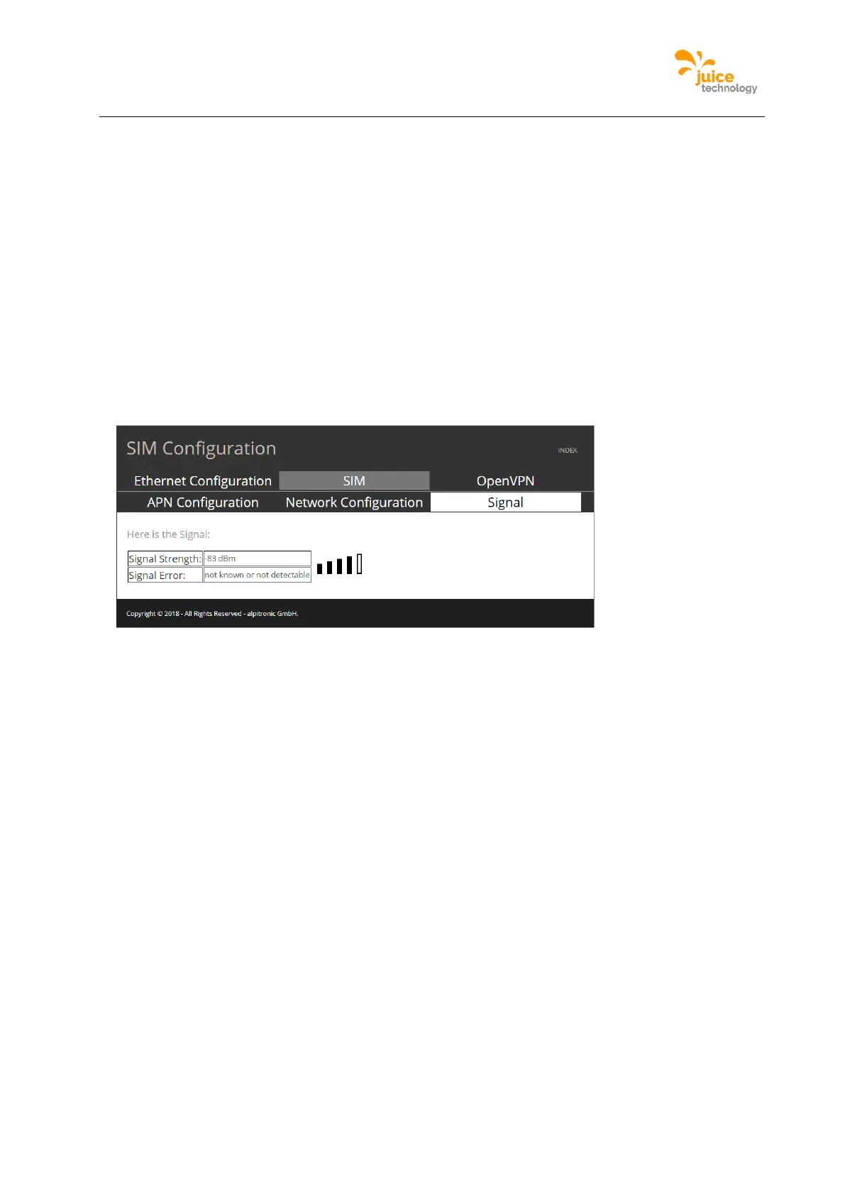 The menu SIM signal allows one to check the strength of the connection using the GSM