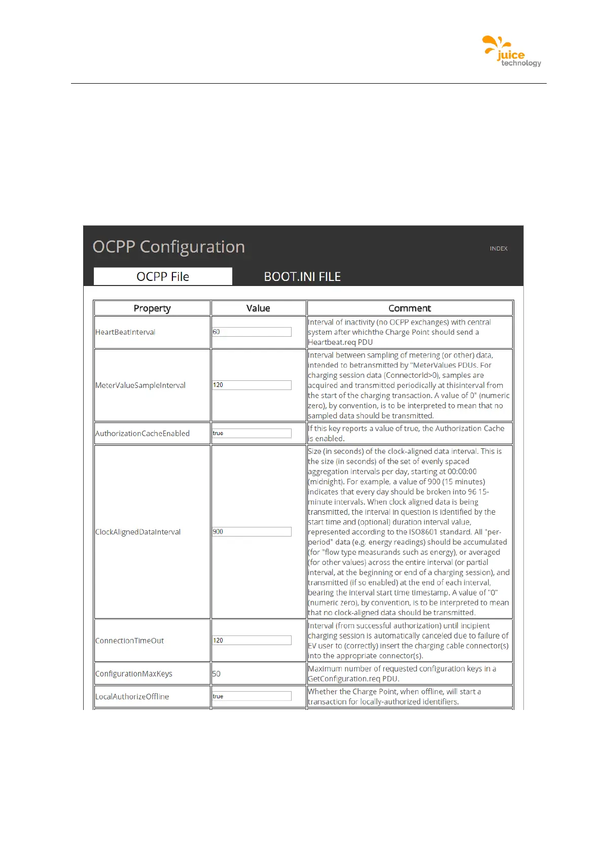 Figure 42 is an example of the webpage where the OCPP configurations are shown, there