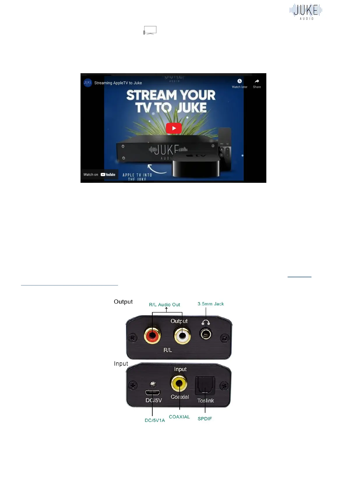Getting Audio From TV to Juke