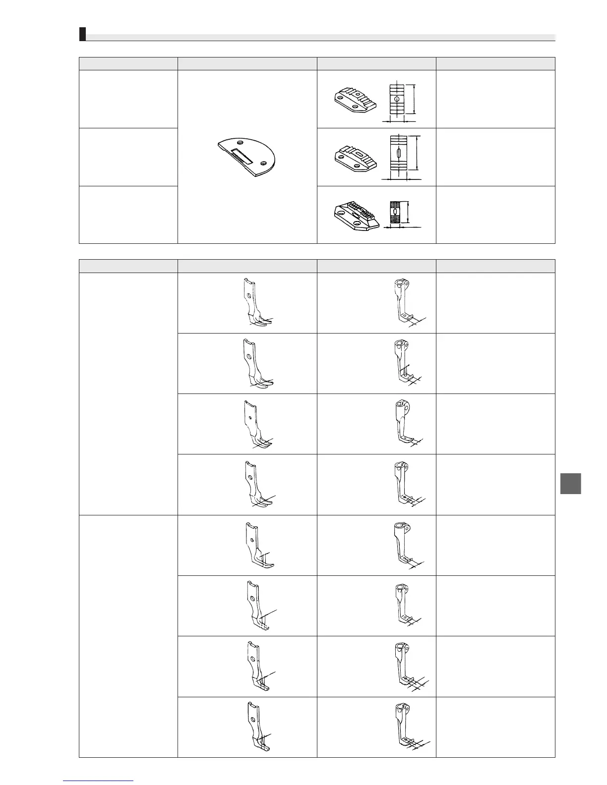 Description Throat plate Feed dog Notes