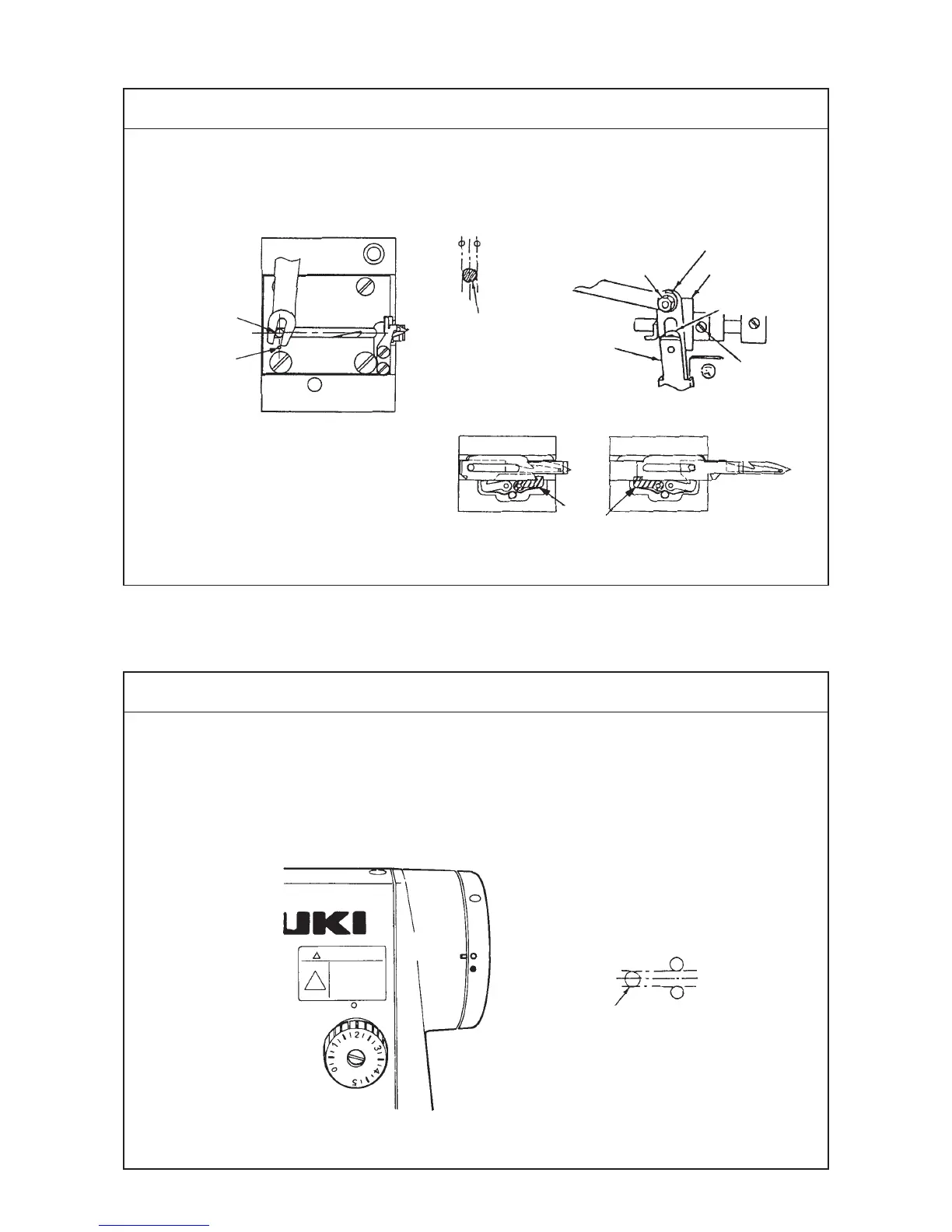 ™ Press roller arm 6 until roller 4 fits in the groove in thread trimming cam 8. Now, lightly turn the