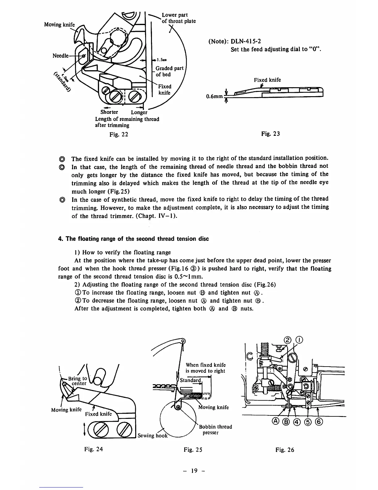 foot and when the hook thread presser (Fig. 16 (D) is pushed hard to right, verify