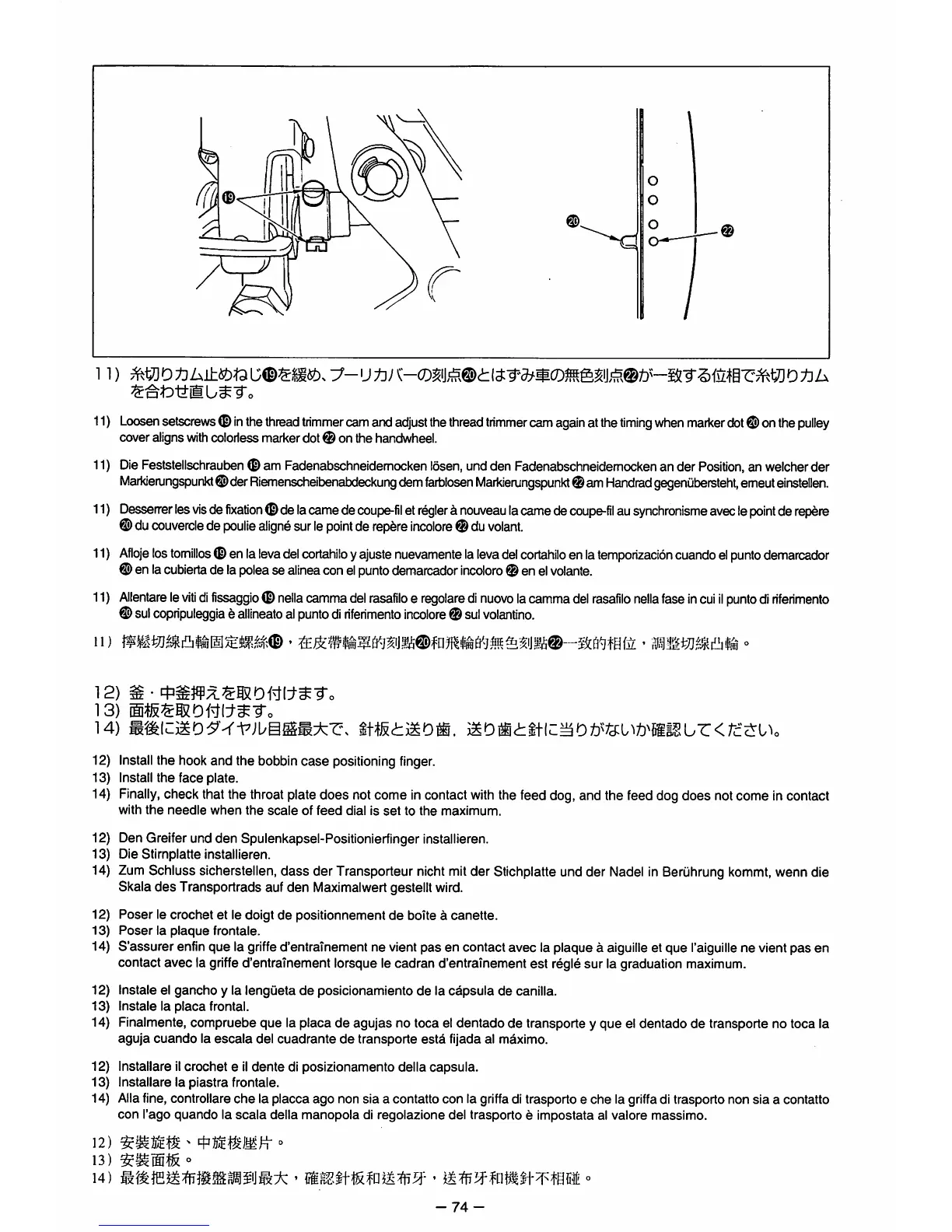 14) ZumSchluss sicherstellen, dass der Transporteur nichtmitder Stichplatte und der Nadel in Beruhrung
