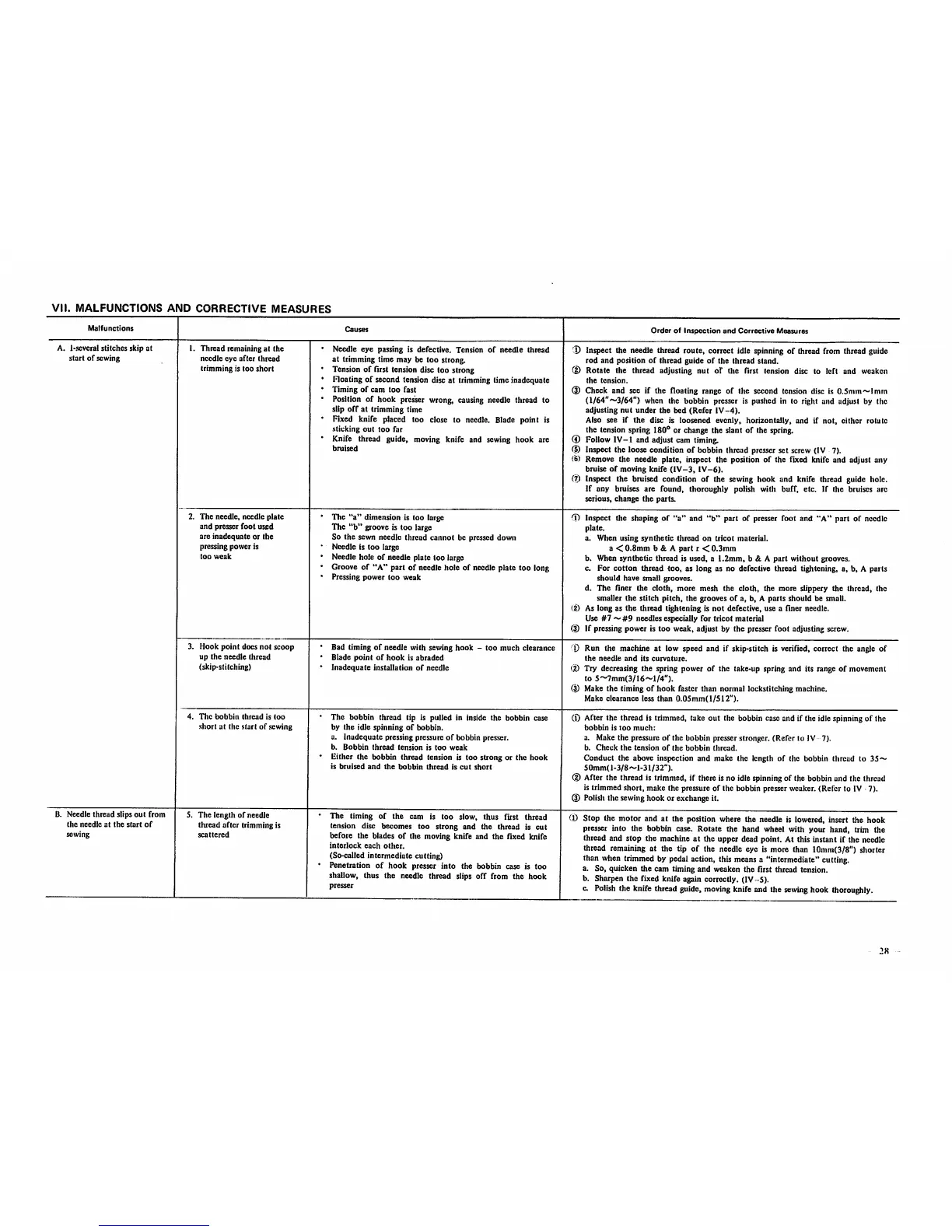 is trimmed short, make the pressure of the bobbin presser weaker.(Refer to IV 7).