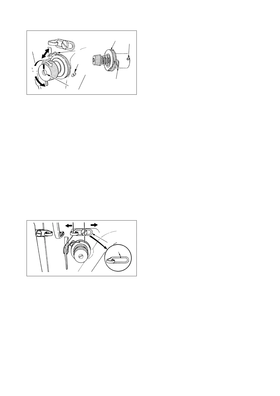 3)糸案内❶は、刻線 がねじの中心に一致するの