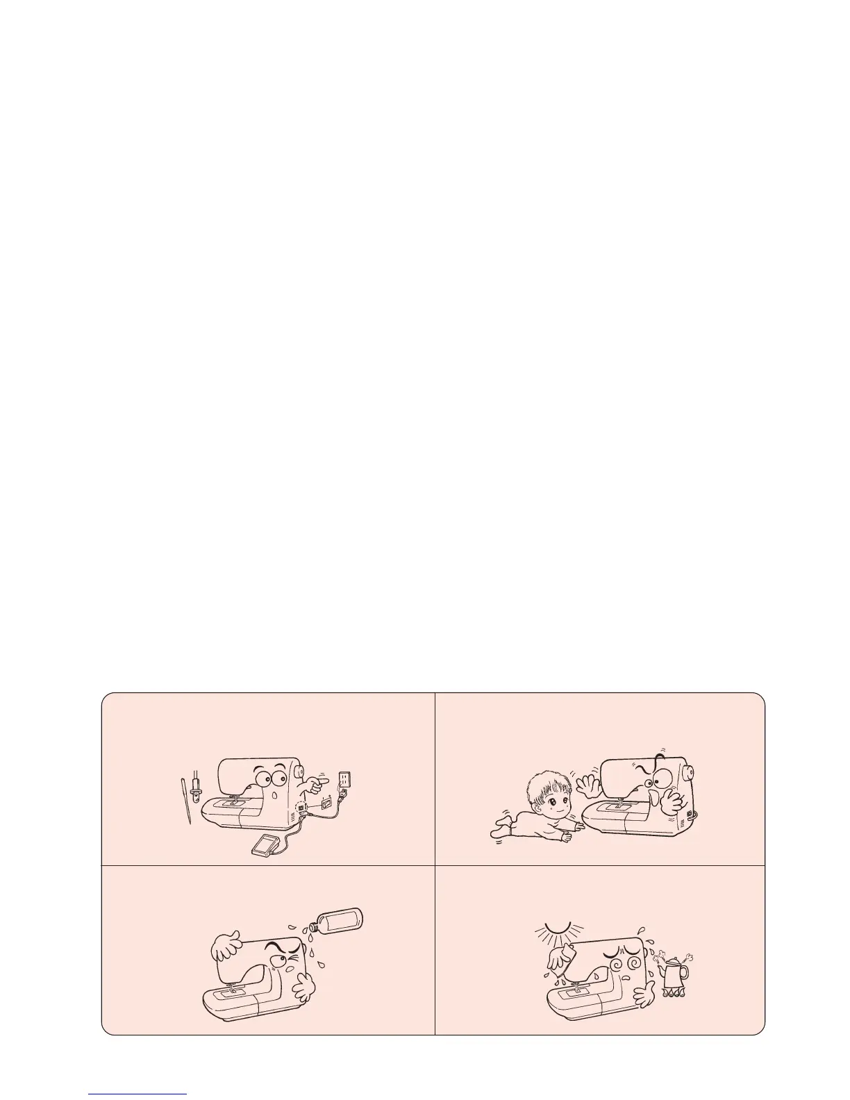 10. “Always unplug sewing machine from the electrical outlet when removing covers, lubricating, or when making