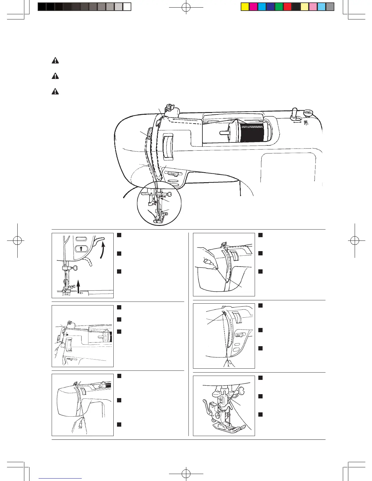 * Be sure to raise the presser foot before threading the ma-