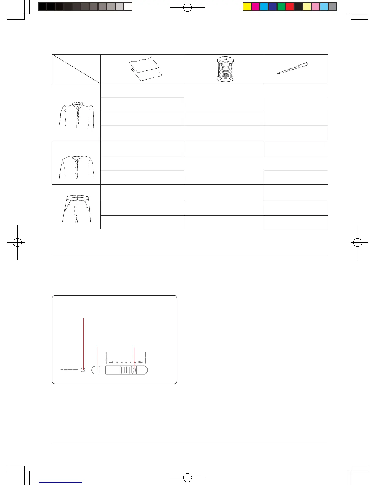 tipo de costura, la longitud de la puntada se ajusta