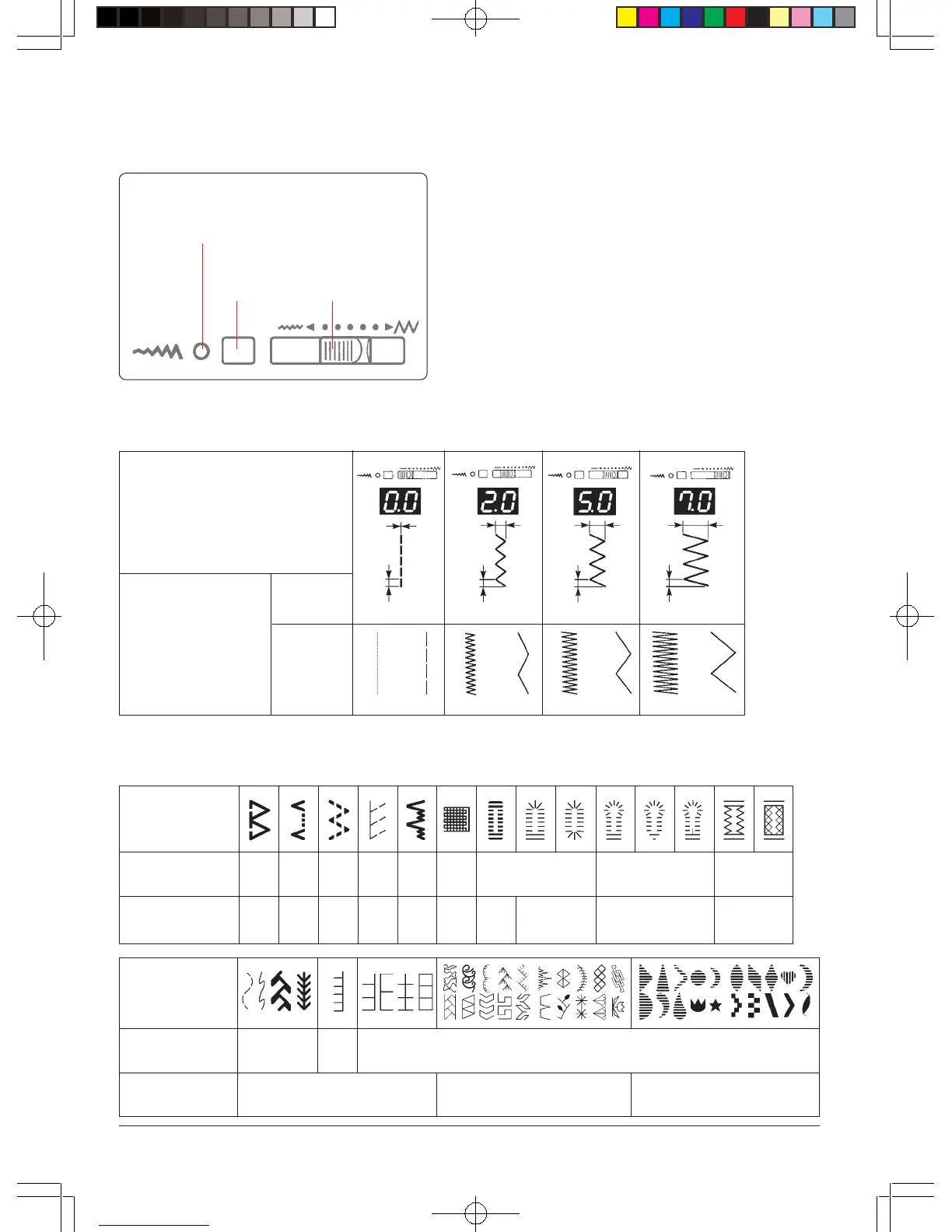 Stitch patterns which are possible to adjust stitch width