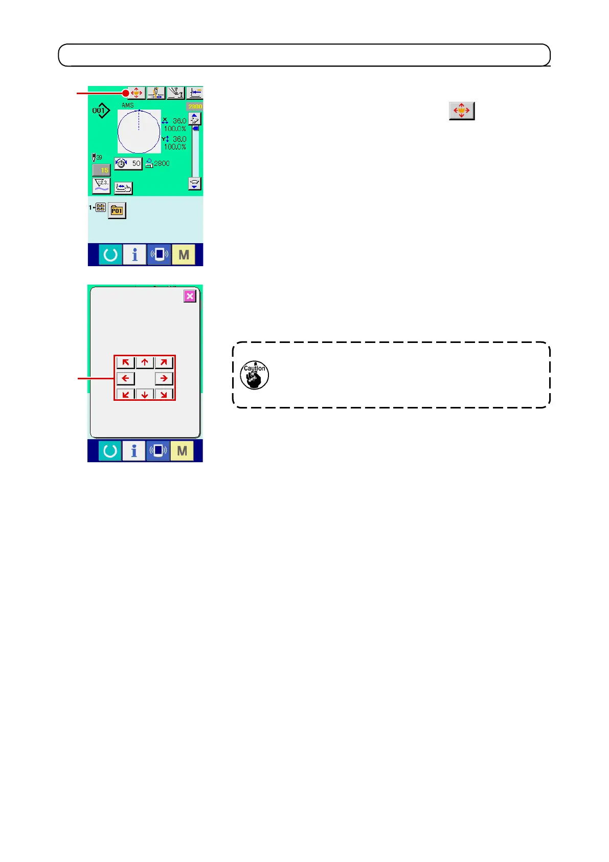 Lower the presser, and input the move direction with DIREC-