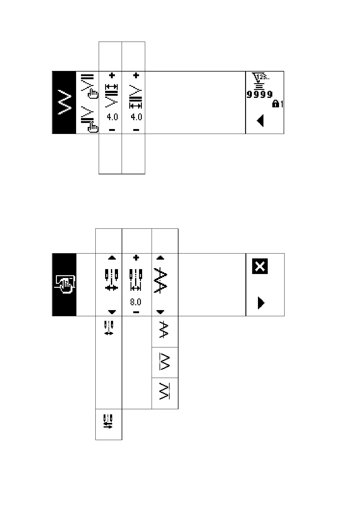 Sewing common data setting rst screen (When max. zigzag width limitation is set in the