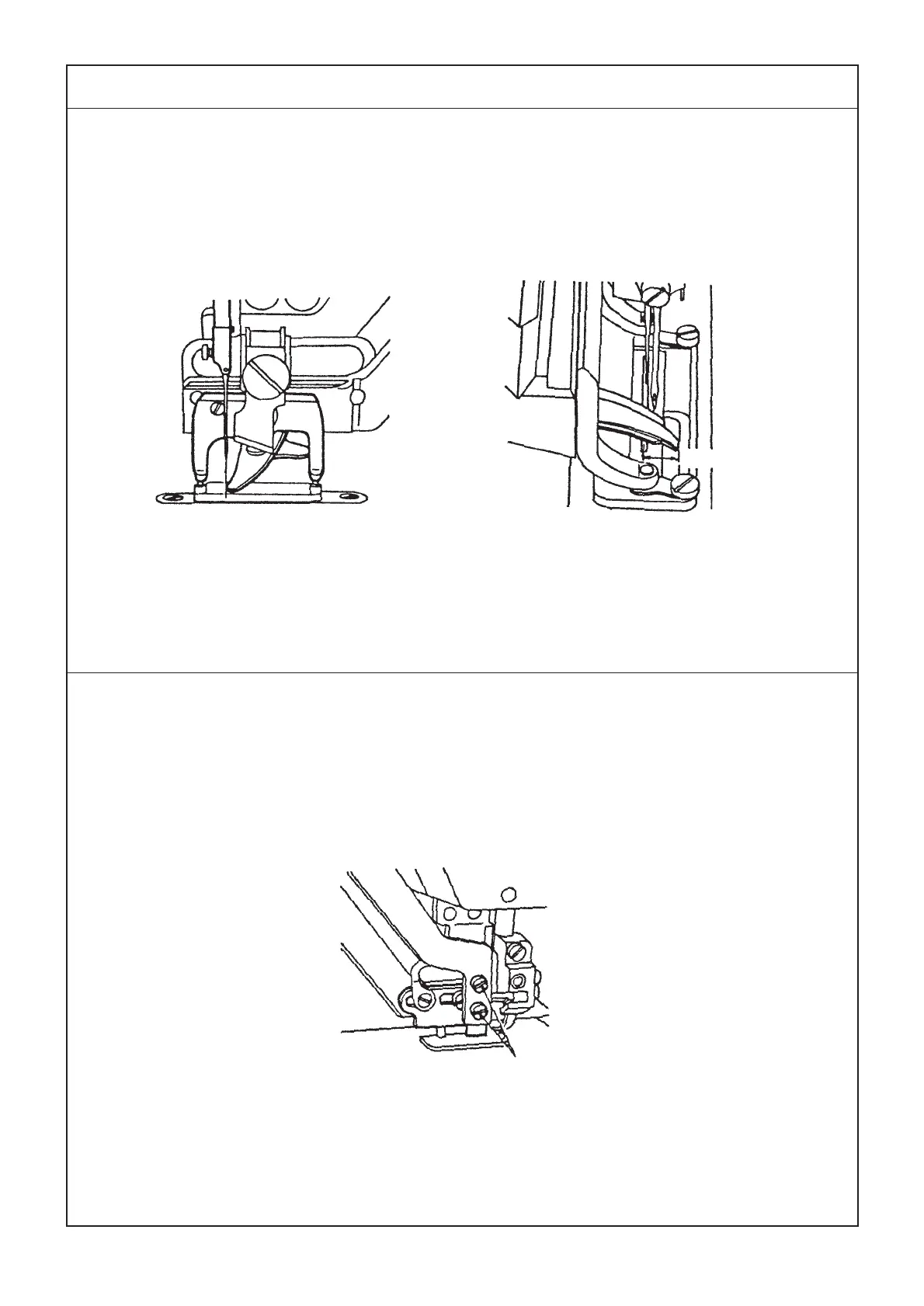 2) End of closing of the needle thread trimmer (upper knife is overlapped with lower knife by 0.5 to 0.8 mm.)