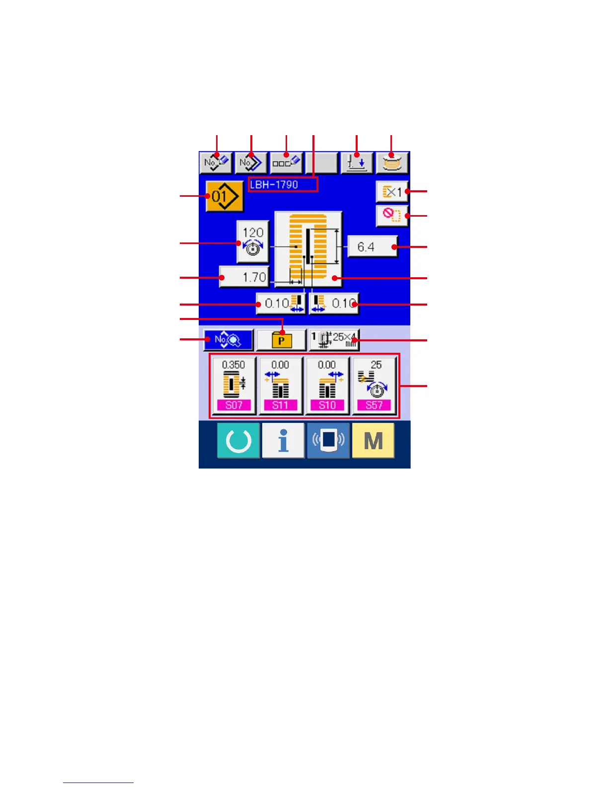 JUKI LBH-1790 - LCD Display Section During Independent Sewing; Independent Sewing Data Input Screen