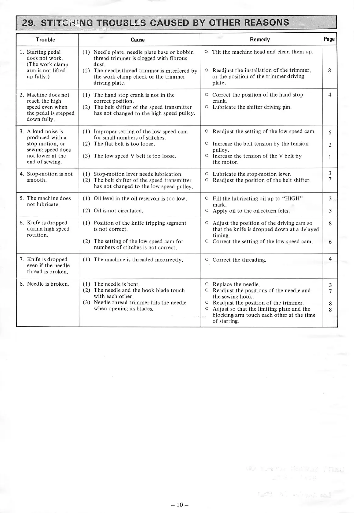 JUKI LBH-781 - Stitching Troubles Caused by Other Reasons (2); 1. Starting Pedal Does Not Work; 2. Machine Does Not Reach High Speed; 3. Loud Noise or Speed Issues