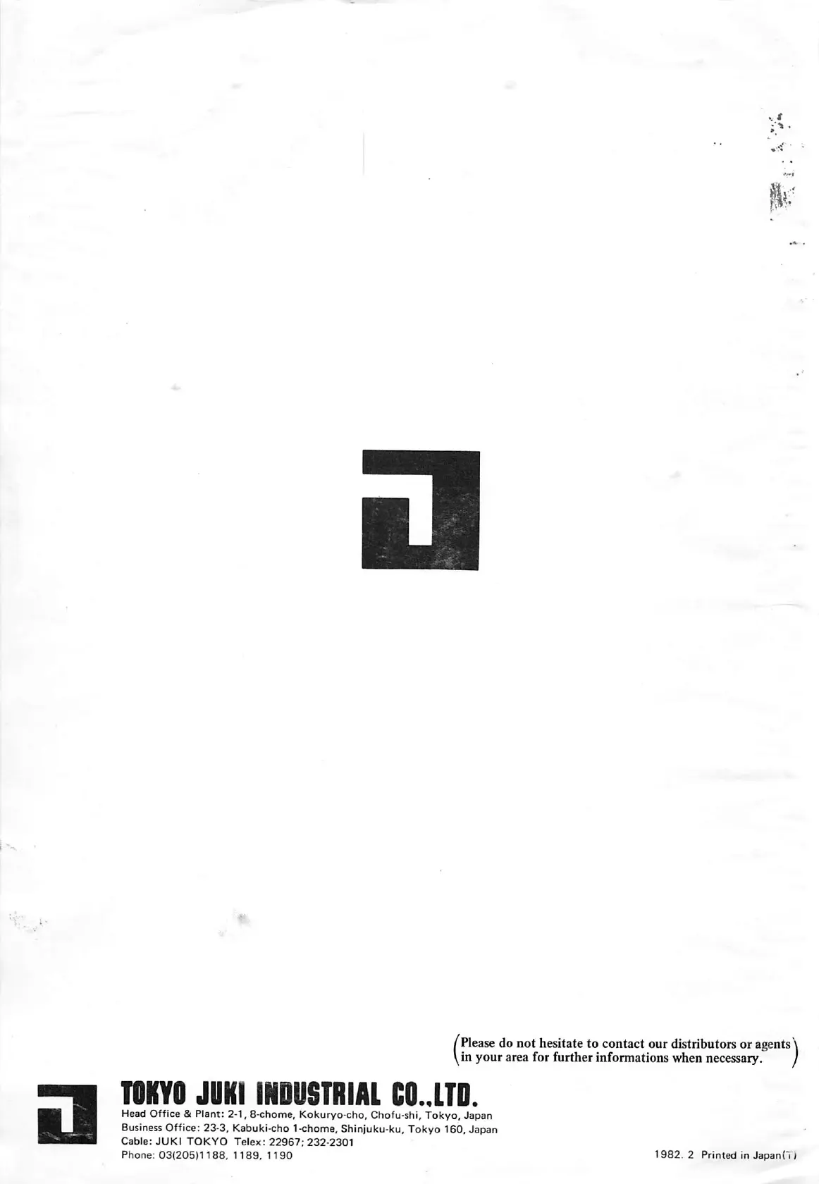 Head Office & Plant: 2-1, 8-chome, Kokuryo-cho, Chofu-shi,