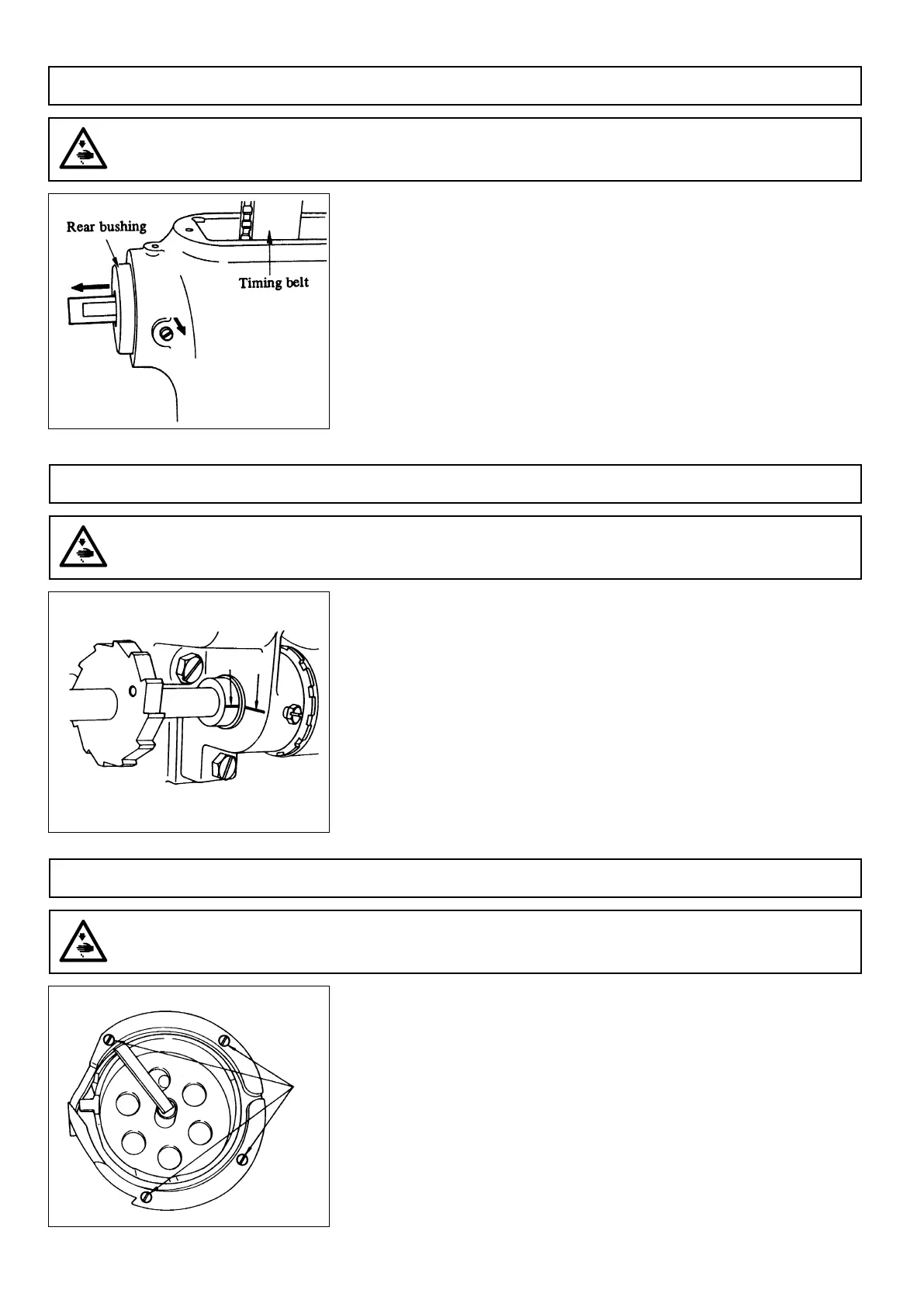 4. Pull out the timing belt from the hole from which the bushing was pulled out.