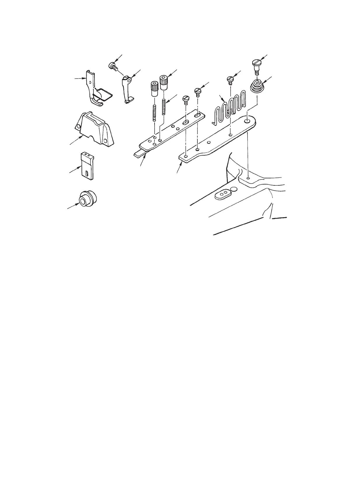 4. Pass feed plate hinge screw 3 through feed plate presser spring 2 and with the screw assemble feed