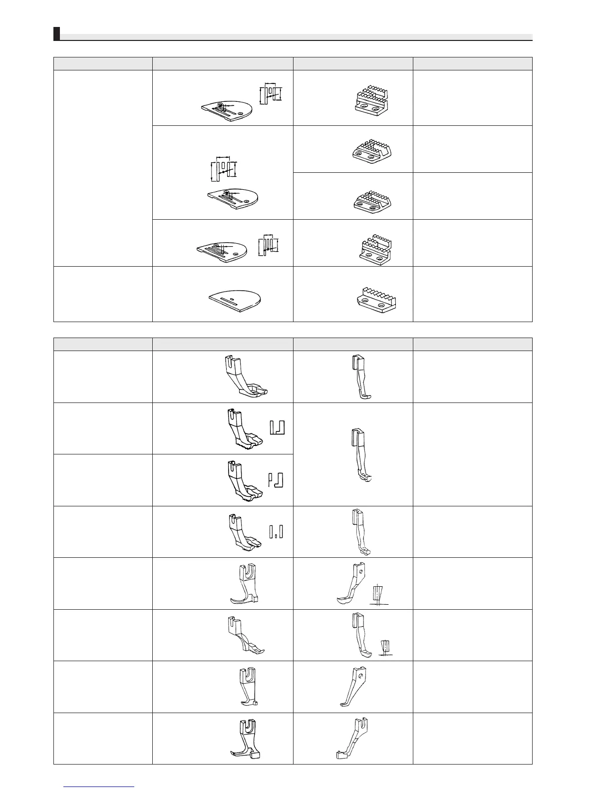 Description Throat plate Feed dog Notes