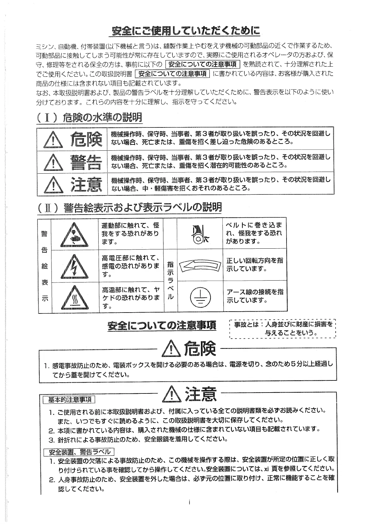 JUKI LU-1508N - General Safety Precautions; Hazard Levels Explanation; Warning Symbols and Labels