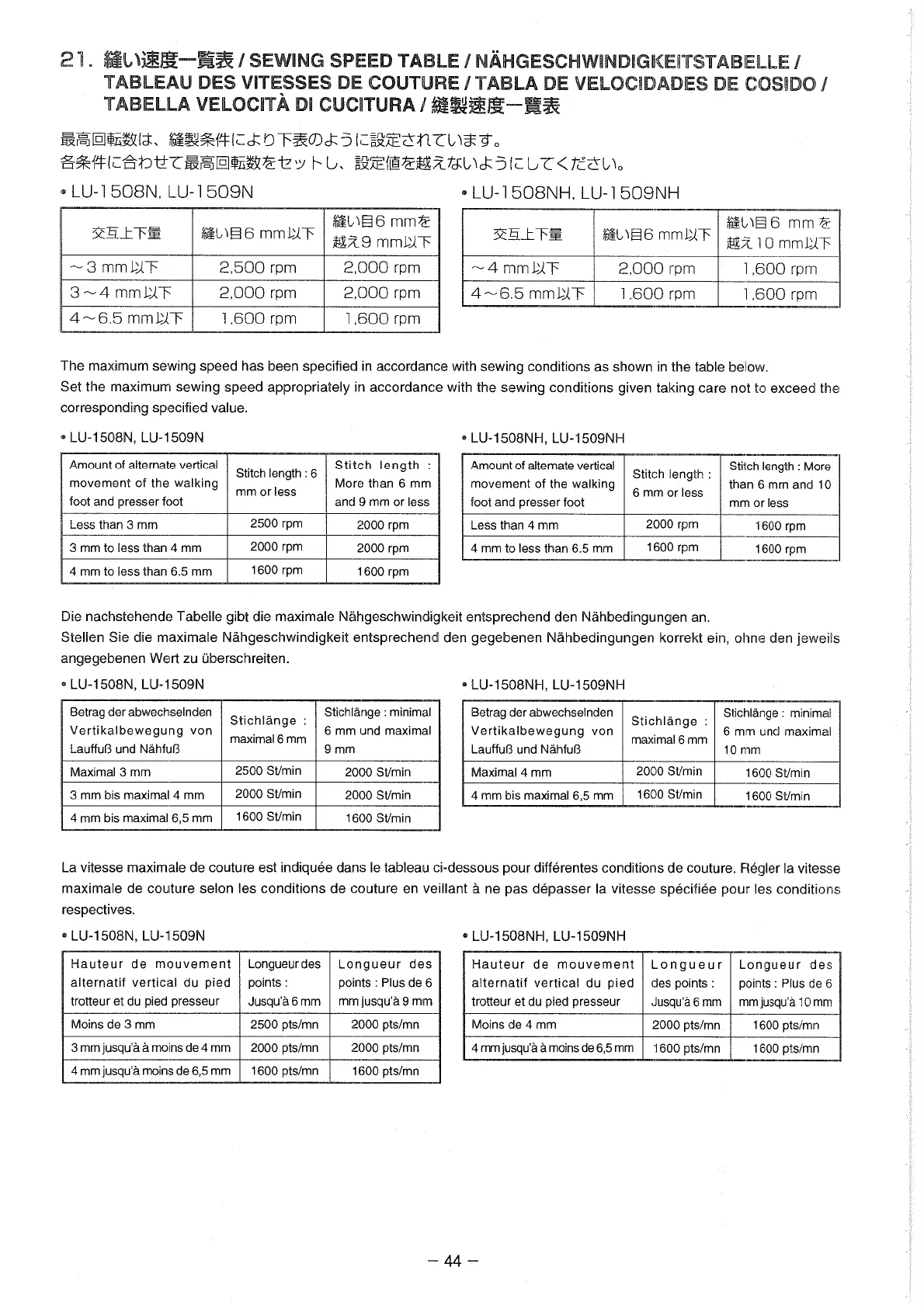Need sales, parts or service for LU-1508N/H? Call 215/922.6900 info@keysew.com www.keysew.com