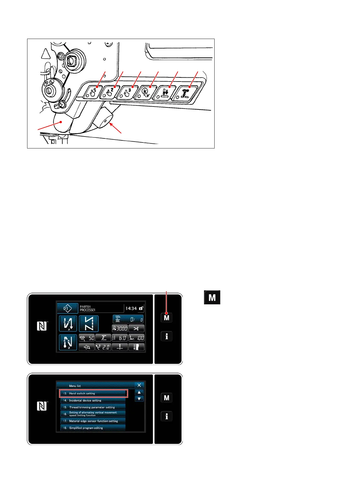 Machine head switch 4: Cancellation/addition switch for automatic reverse feed stitching